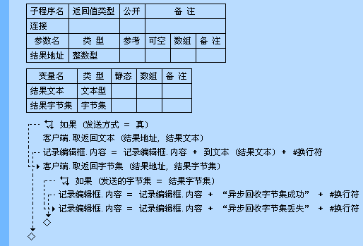 异步发送数据时,要在“连接”子程序中接收服务端返回的数据。