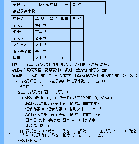 设对应的Sqlite表有X条记录,N个字段。则“取所有记录”返回一个x行n列的数组a[x][n] (暂不考虑“包含表头”的情况),