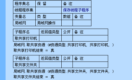 可省略;类型为“整数型(int)”,可以被省略,提供参数数据时只能提供变量数组。命令执行完毕后本变量数组中依次存放取得的资源的类型,并与取得的资源路径一一对应。该数组成员值可以为以下常量之一:“#资源类型.共享文件夹”或“#资源类型.共享打印机”。 |