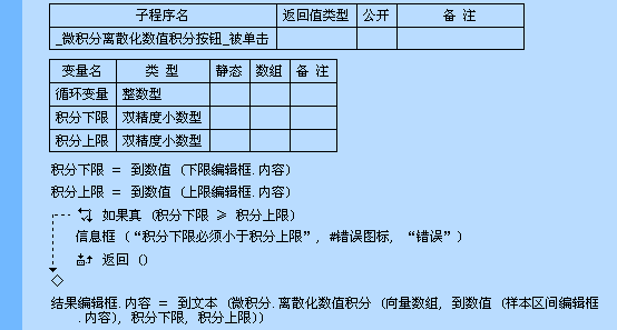 语法: 双精度小数型 微积分.离散化数值积分 (浮点向量,样本区间,积分下限,积分上限)
