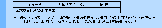 语法:  双精度小数型  微积分.函数数值积分 (样本区间,积分下限,积分上限)
