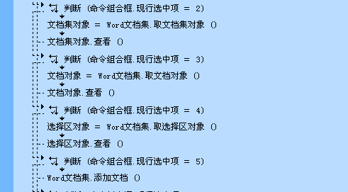 通过“取文档对象”命令取出“Word文档集”中的文档对象,将取出的对象保存在变量“文档对象中”。