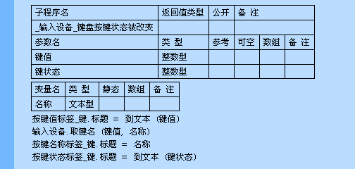 语法: 无返回值 _输入设备_键盘按键状态被改变 (键值, 键状态)