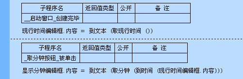 将“现行时间编辑框”中的时间文本转换成日期时间型数据,通过“取分钟”命令将“分钟部分取出”,并显示在“显示分钟编辑框”中。