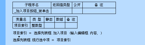语法: 整数型 选择列表框.加入项目 (欲加入项目的文本,[与欲加入项目相关的数值])