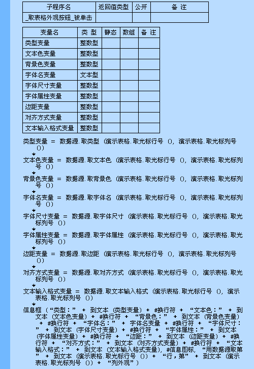 语法: 整数型 数据源.取字体尺寸 (行号,列号)
