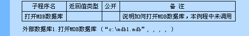 语法: 逻辑型 外部数据库.打开MDB数据库 (MDB数据库文件名,[用户名],[密码],[是否只读],[保留参数])