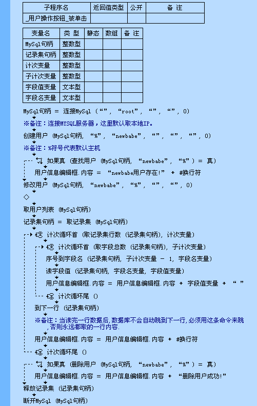 语法: 逻辑型 修改用户 (MySql句柄,用户名,主机名,库名,表名,权限)