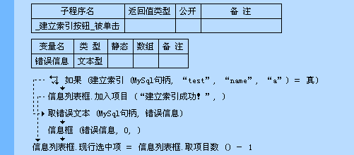 语法: 逻辑型 建立索引 (MySql句柄,表名,列名,索引名)